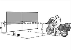 Wanneer de motorfiets 10 meter van een muur staat, moet de horizontale kern van de dimlichtbundel zich 5 centimeter onder het midden van het koplamphart bevinden.