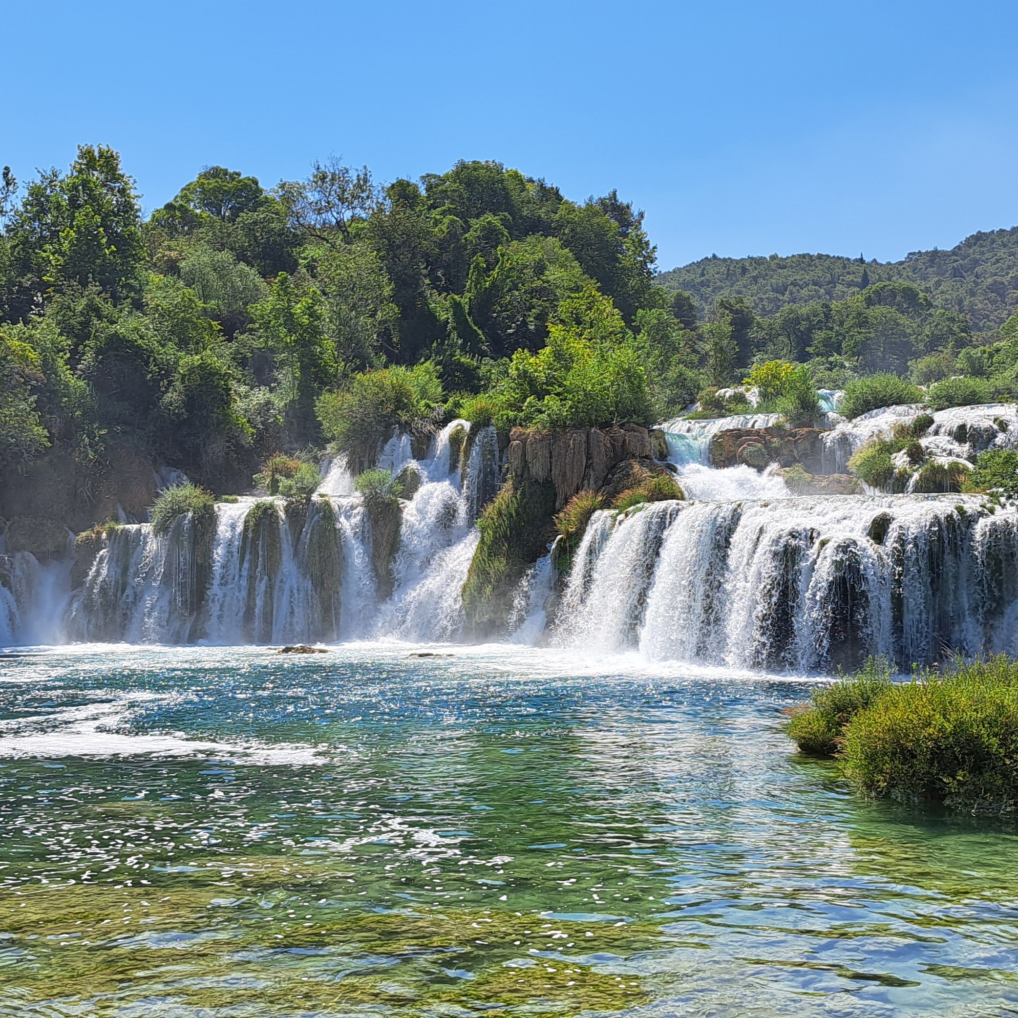 De watervallen van Krka bleken absoluut de moeite waard. Het park is een aaneenschakeling van helder water, groene oases en houten wandelpaden die je langs de mooiste plekken leiden. Vooral de grootste waterval trekt de meeste bezoekers en dat is niet voor niets. Het donderende water, de nevel in de lucht en het uitzicht vanaf de houten brug maken het een plek waar je gemakkelijk even blijft hangen.