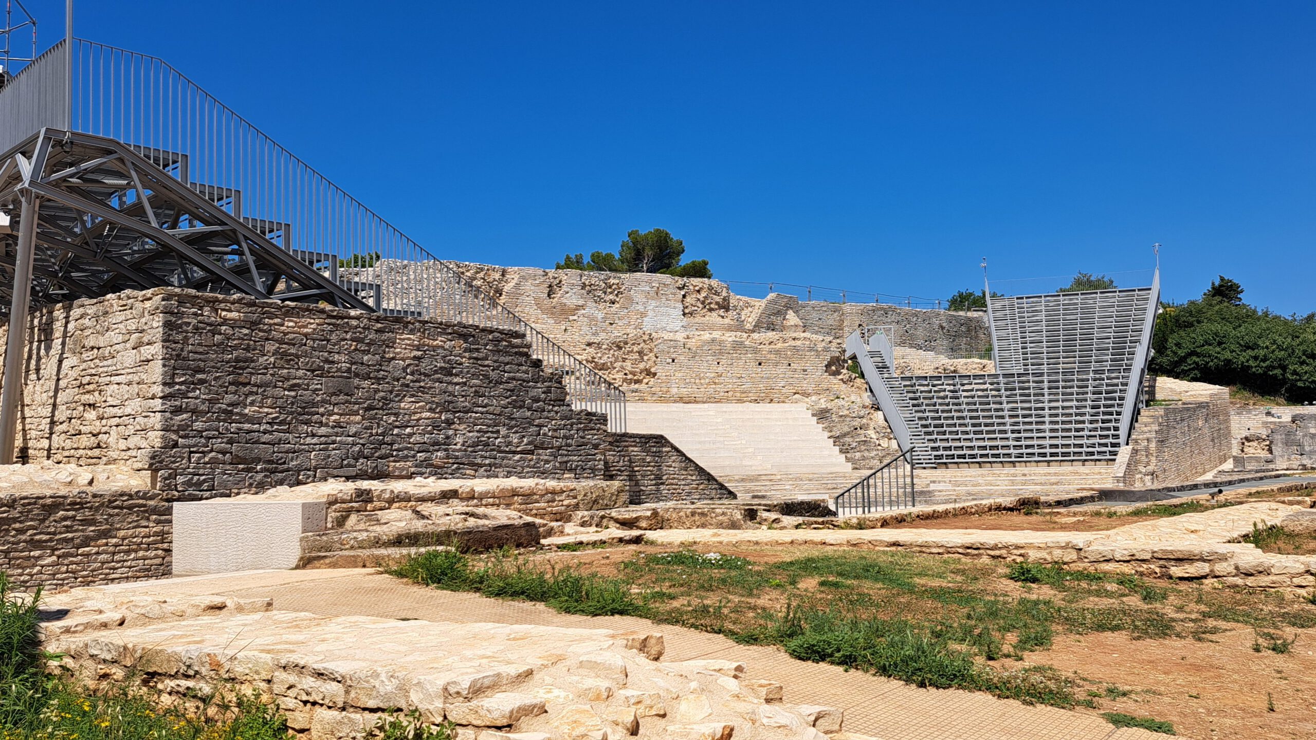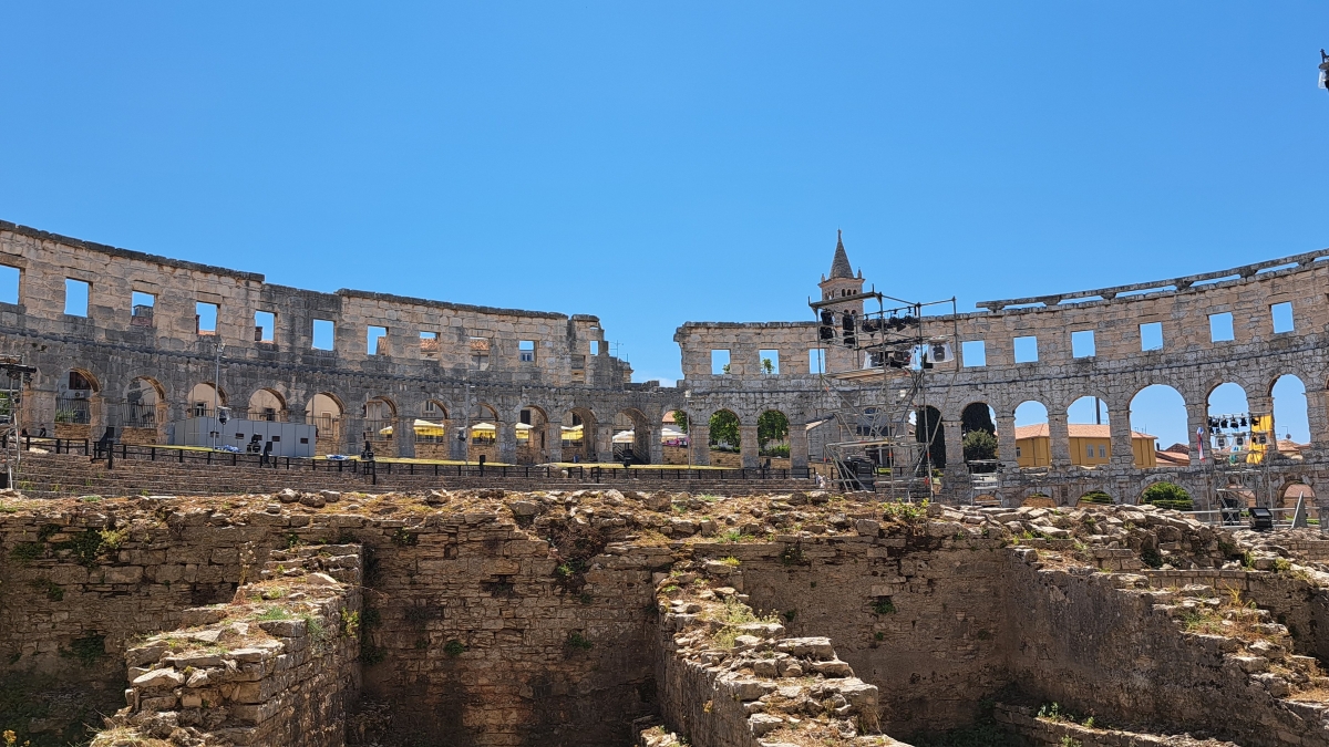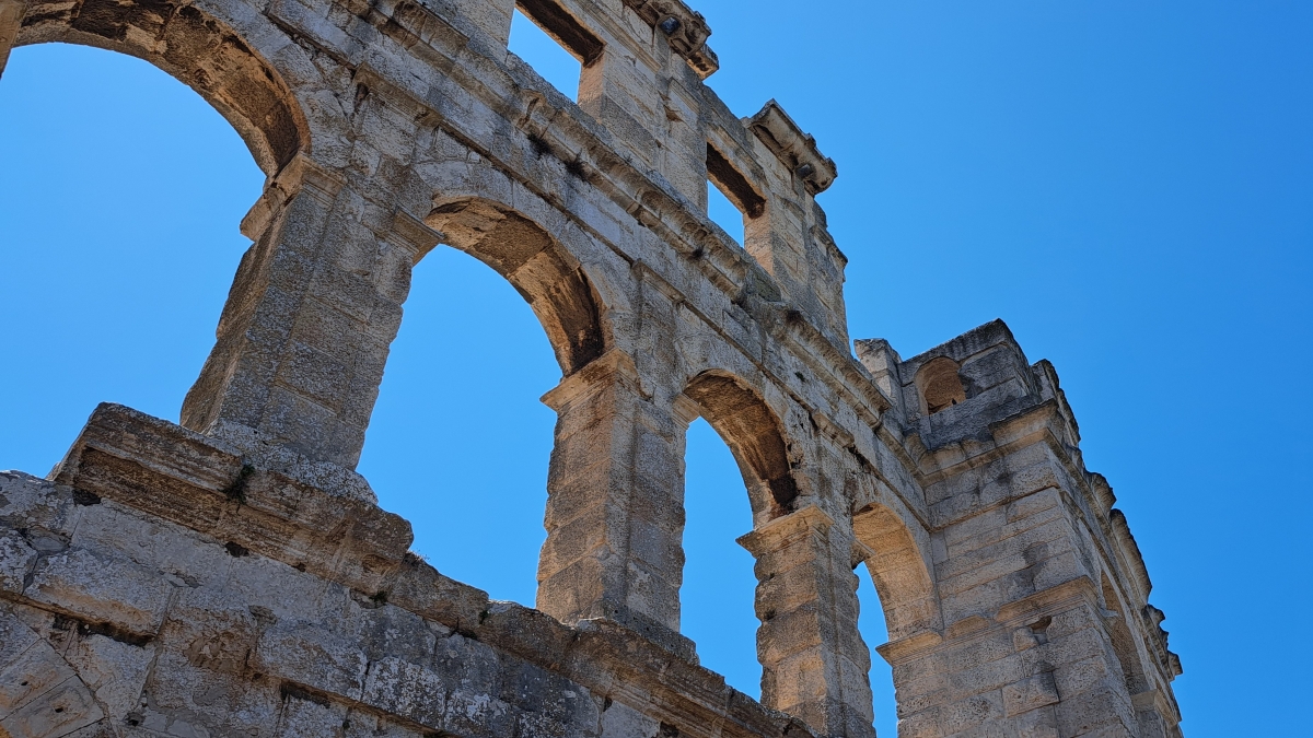 Vandaag begon met een flinke dosis cultuur in Pula. We hebben de stad doorkruist en natuurlijk de beroemde Romeinse arena bezocht een indrukwekkend bouwwerk dat je bijna terug in de tijd trekt. Ook het oude theater lag prachtig in de ochtendzon. Naomi kan er onwaarschijnlijk mooi over vertellen; zij weet precies hoe die oude stenen tot leven komen.