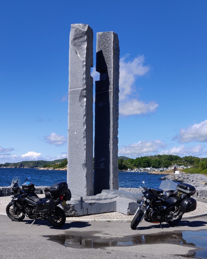 De route langs de zuidelijke kust is heerlijk om te toeren, zeker nu het weer ons gunstig gezind is. Toch merken we dat niets op kan tegen de schoonheid van de hoge fjorden die we eerder zagen. Noorwegen blijft verbazen, maar de fjorden zetten voor ons toch echt de standaard.