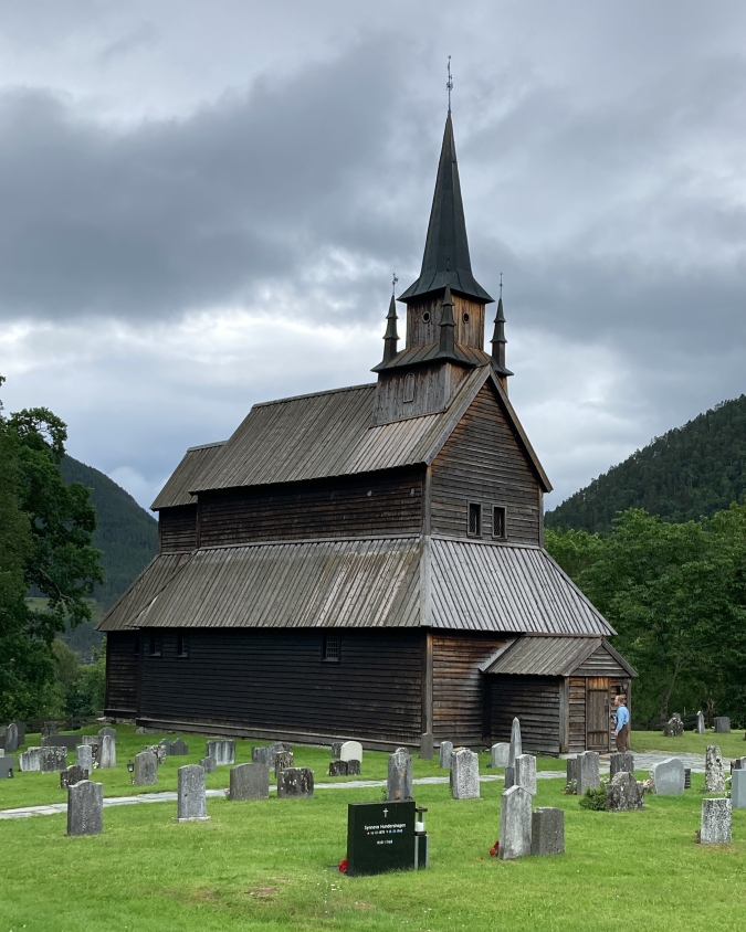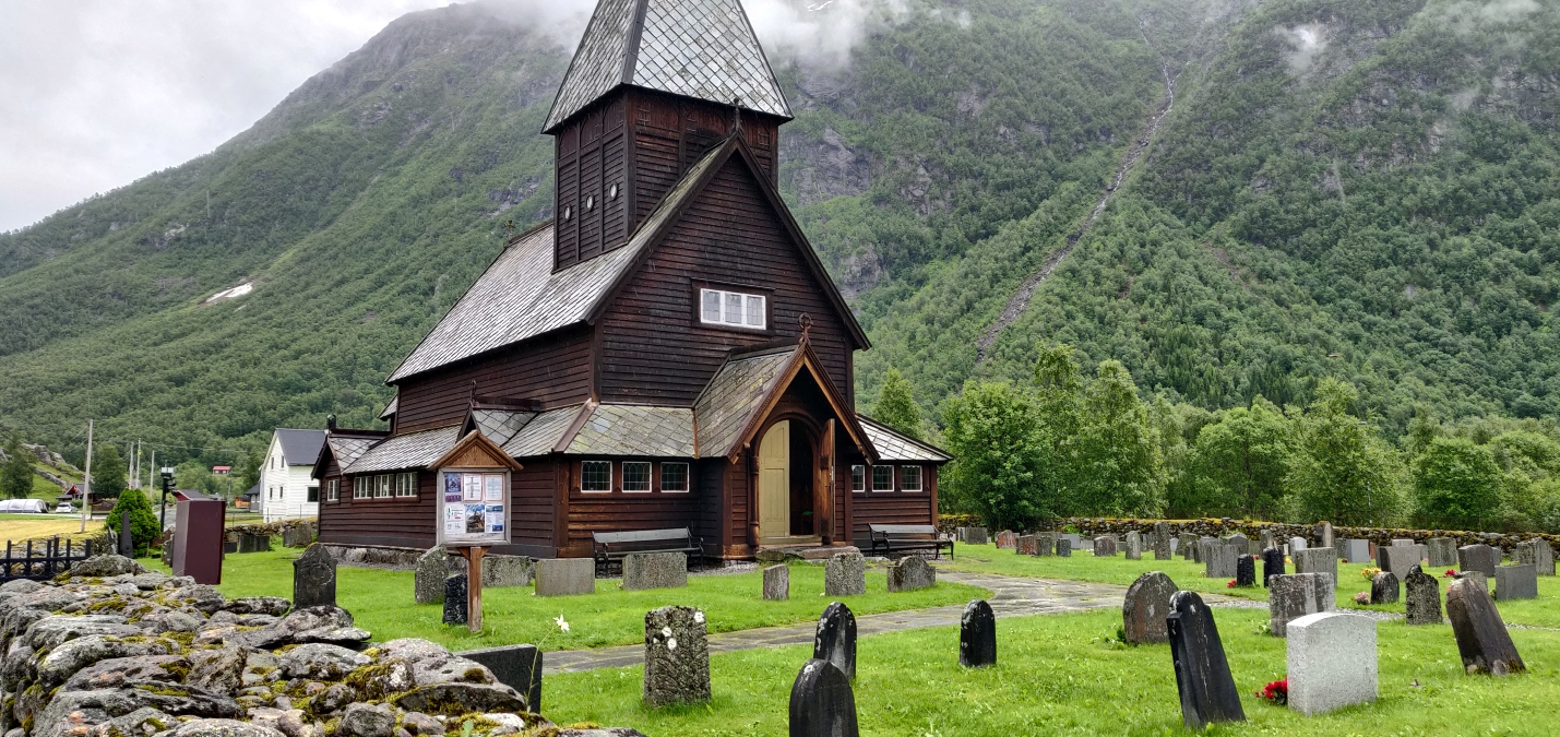 Onderweg passeerden we het dorpje Kaupanger, waar aan het einde van een rustige doodlopende weg de Kaupanger stavkyrkje staat, de grootste staafkerk van de regio Vestland. De kerk dateert van rond 1140 en biedt plaats aan zo’n 125 mensen. Het houten gebouw wordt gedragen door maar liefst 22 kolommen, meer dan in welke Noorse staafkerk dan ook. Opvallend was dat er geen enkele toerist te bekennen was, in tegenstelling tot de drukkere staafkerken die we eerder bezochten. Een serene, bijna tijdloze plek.