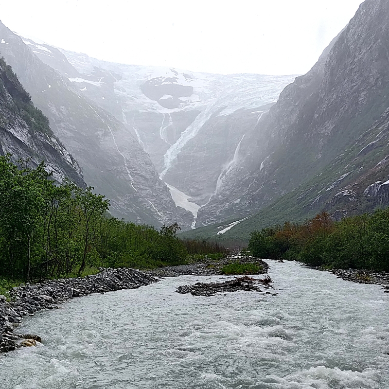 Kjenndalsbreen is de minst bekende van de vier beroemde gletsjerarmen in deze regio (naast Nigardsbreen, Briksdalsbreen en Bødalsbreen). Juist daarom kozen wij ervoor: de afgelegen ligging en het smalle pad zorgen voor een rustig bezoek, zonder toeristische drukte.