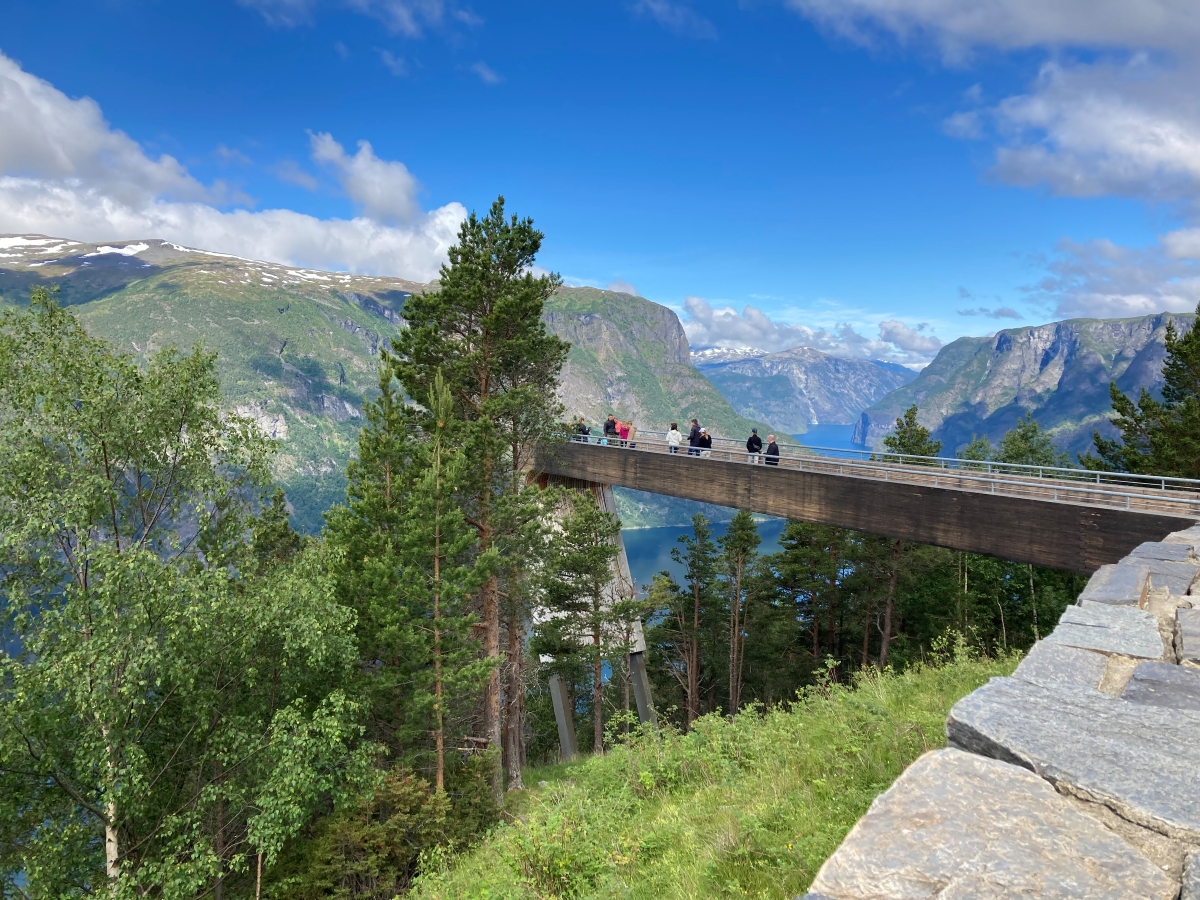 Vanaf Fortun volgden we de kustlijn van het indrukwekkende Sognefjord, het grootste fjord van Noorwegen. Het landschap wordt hier nog grootser, met steile bergwanden en water dat diep de aarde insnijdt. Ons volgende doel was de route over het Aurlandsfjellet, de oude verbindingsweg tussen Lærdal en Aurland. Tegenwoordig is er een moderne tunnel die deze plaatsen met elkaar verbindt ,de langste autowegtunnel van Noorwegen, maar wij kozen voor de oude bergweg, die veel mooier en landschappelijker is.