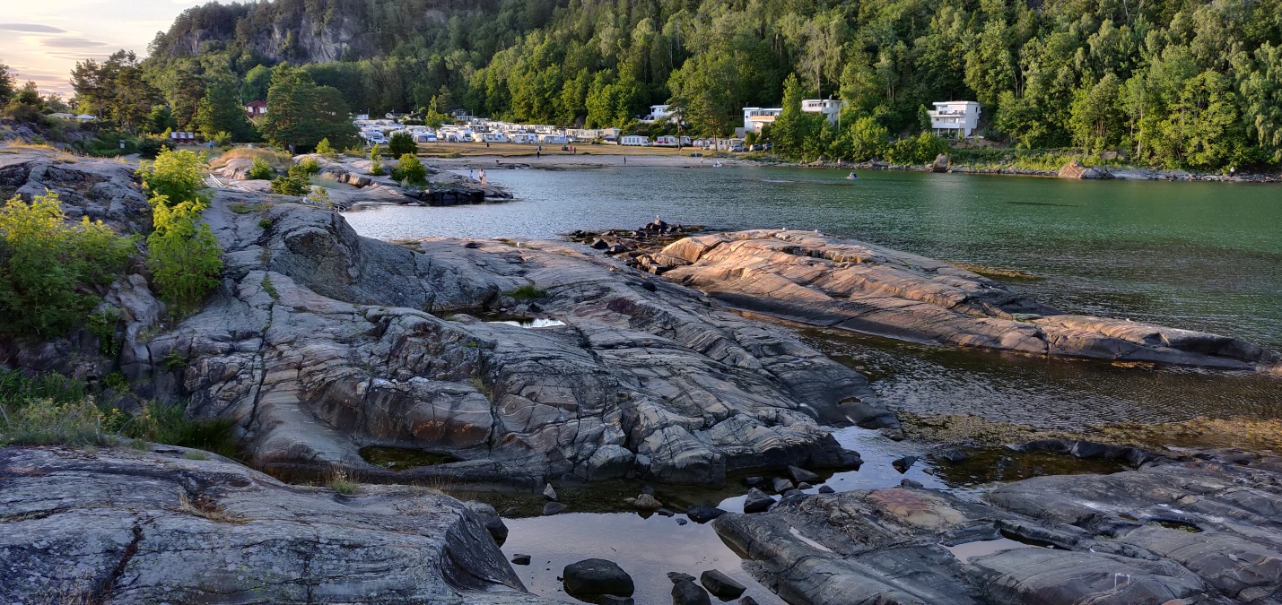 Na het bezoek aan Hamar rijden we verder richting de kust en merken we hoe het landschap langzaam verandert. De bergen maken plaats voor glooiende heuvels en uiteindelijk voor de eerste contouren van de scherenkust. We vinden een rustige camping in Utvika, waar we aan het water kunnen genieten van de serene avond.