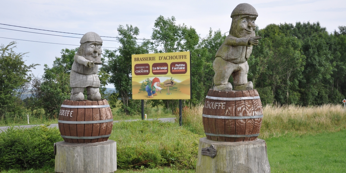 Bij het afslaan naar het park passeren we twee opvallende kabouterbeelden. In eerste instantie staan we daar niet zo bij stil, maar later blijkt dat dit verwijst naar het lokale kabouterbier dat hier wordt gebrouwen — een leuke eerste kennismaking met de regio.